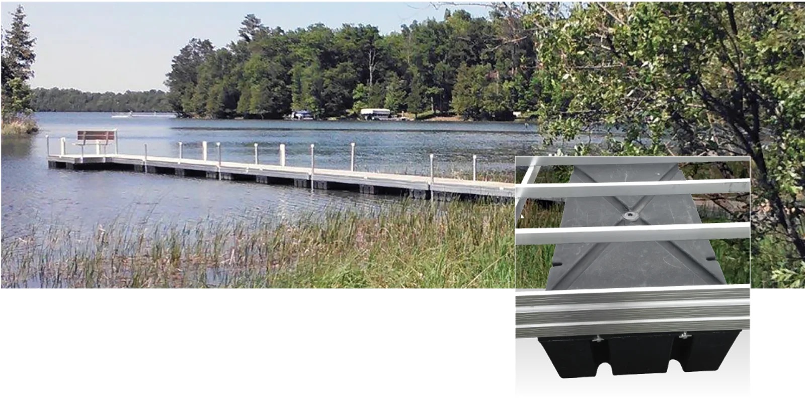 Available with dock sections ranging from 8′ to 16′ in length, low profile floating docks can easily create any size or shape dock you require. Plus, accessories are added in a snap with our fast-track clip system.