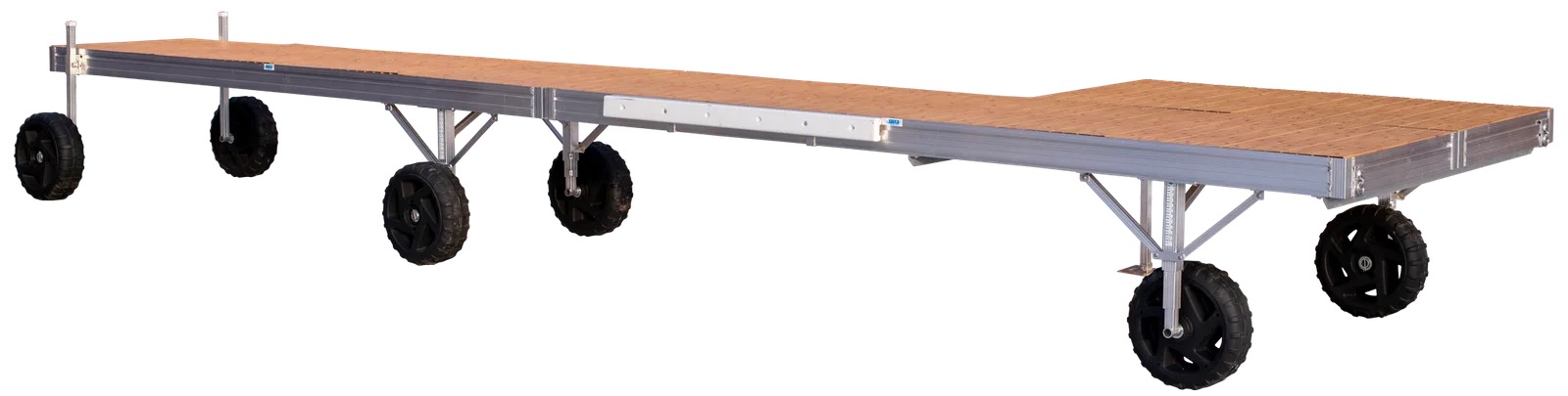 Adjust the level of your dock using only a cordless drill with our three-piece telescoping design. Legs can be mounted inside dock frame and below deck, and feature multi-directional wheels to make movement easy.